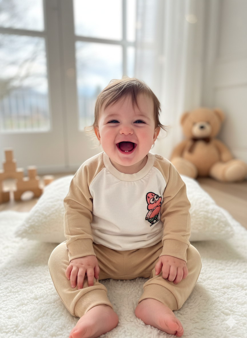 - طرح جذاب پاتریک: طرح کارتونی پاتریک که بر روی این ست لباس قرار دارد، مورد علاقه کودکان و والدین است و جلوهای شاد و کودکانه به لباس میبخشد.