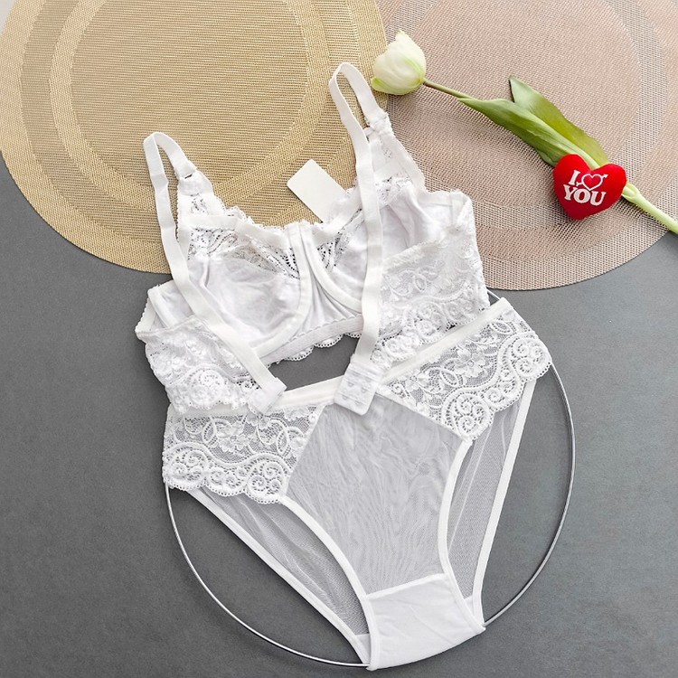 ست سوتین شورت سفید فنردار دانتل زیر نخ سایز75 تا90