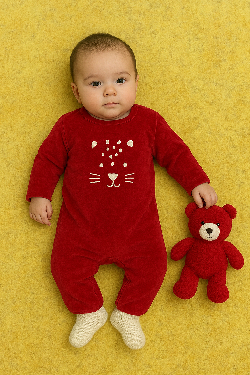 سرهمی نوزادی مخمل برند Okaidi-Obaibi فرانسه طرح پلنگ