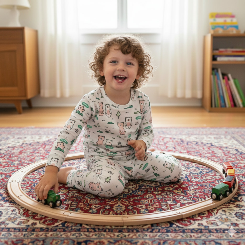 ست راحتی بچگانه طرح خرس شاد، انتخابی ایدهآل برای کودکان پرانرژی و خوشسلیقه است. این ست ترکیب است از الیاف طبیعی پنبه ، همین موضوع باعث شده تا هم لطافت و نرمی مطلوبی داشته باشد و هم در برابر شستوشو و استفادهی روزمره مقاوم باقی بماند.