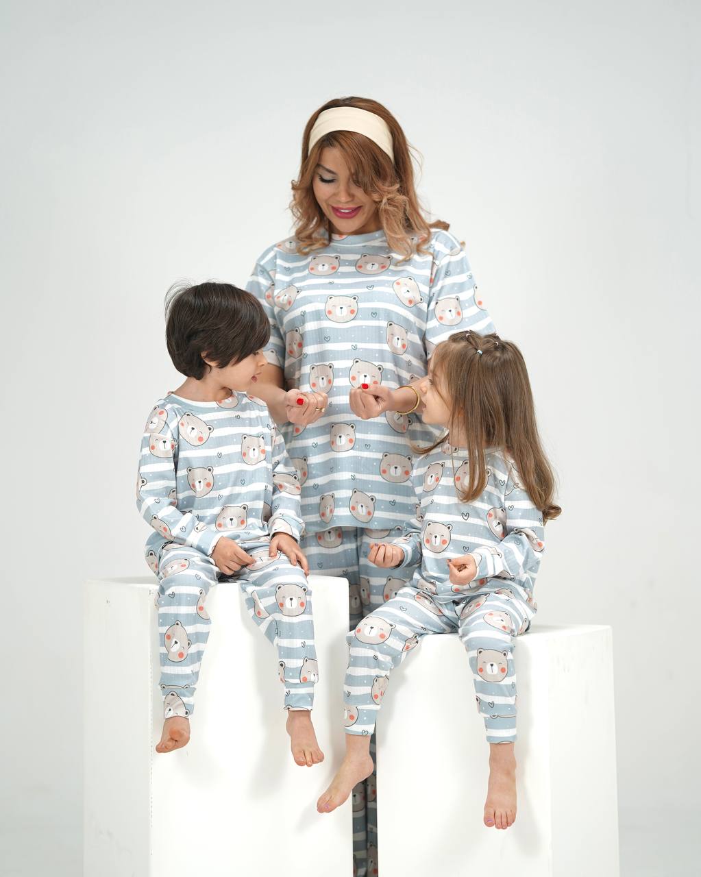 ست راحتی مادر و کودک جنس پنبه چاپ راه راه خرس