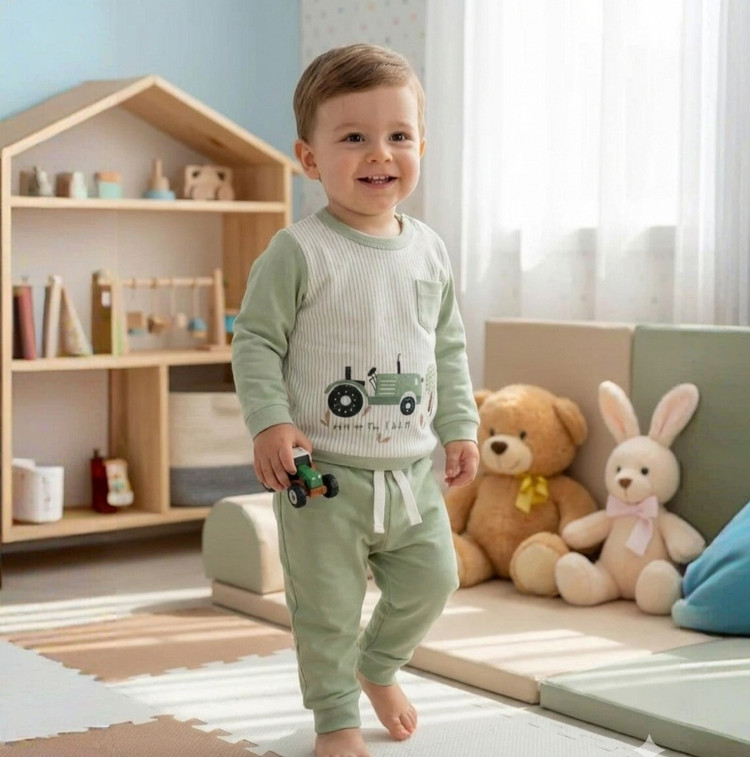 اگر به دنبال یک ست بلوز و شلوار نوزادی تمام پنبه با کیفیت بالا و طراحی فانتزی هستید، این مدل طرح تراکتور بهترین انتخاب برای کودک شماست. این لباس نوزادی پنبهای با بافتی نرم و لطیف طراحی شده و کاملاً مناسب پوست حساس نوزادان از بدو تولد تا 3 سالگی است.