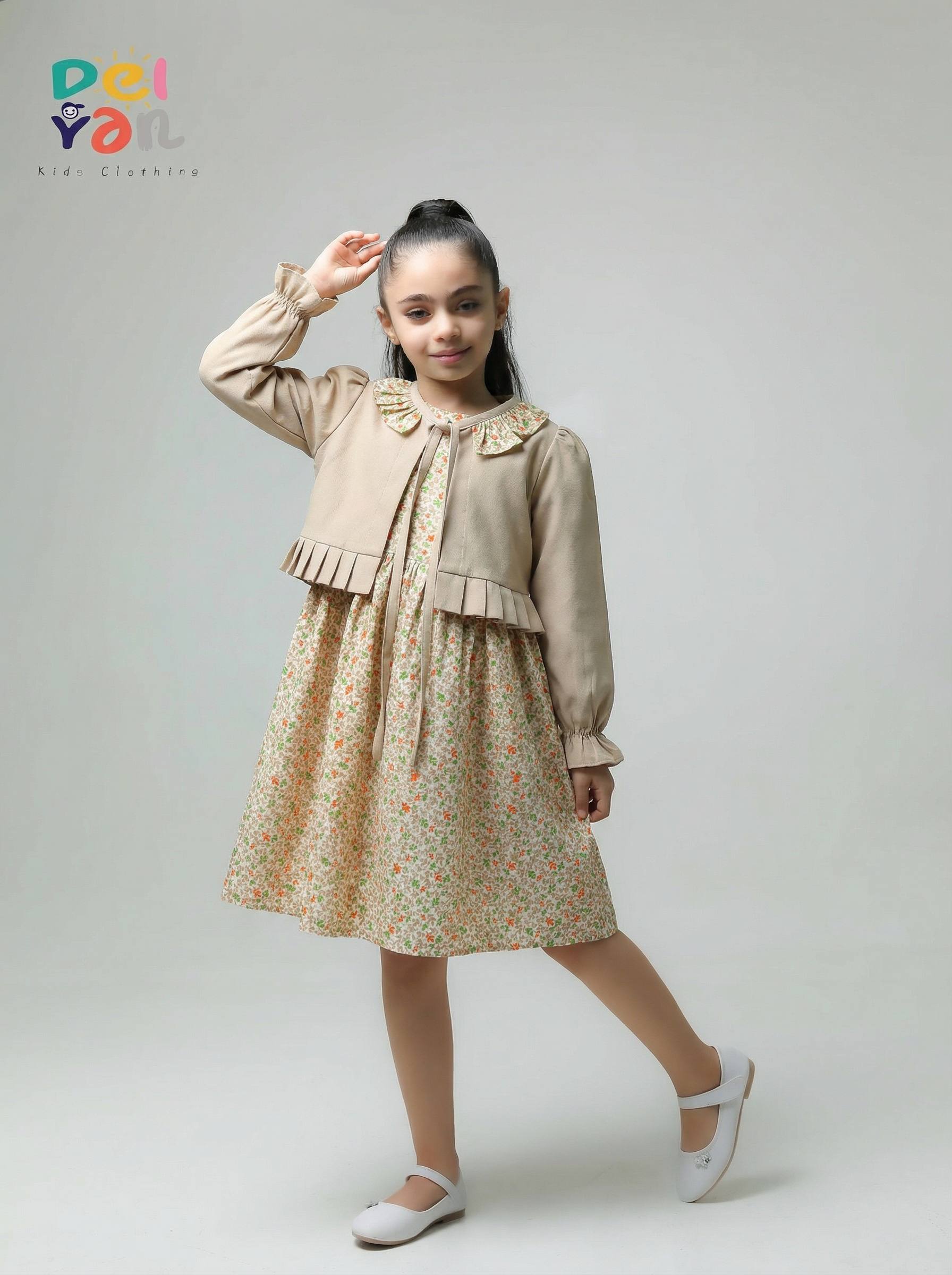طرح گلدار این سارافون دخترانه گلدار حس لطافت و شادابی کودکانه را به استایل فرزندتان میبخشد. کت هماهنگ با سارافون، ظاهر لباس را کامل کرده و آن را برای مهمانیها، تولدها و مراسم رسمی مناسب میکند.