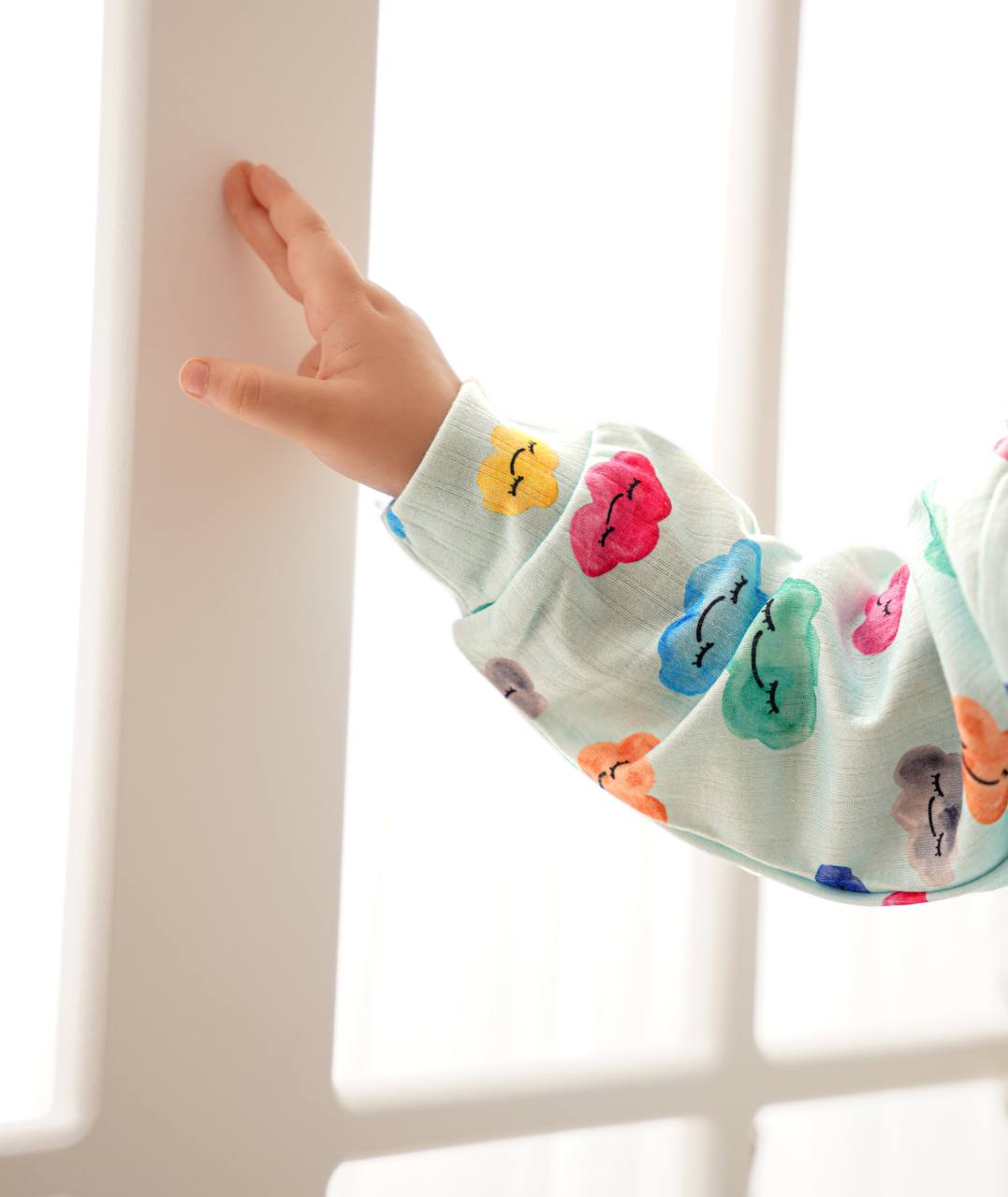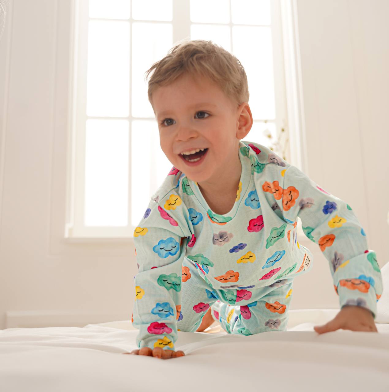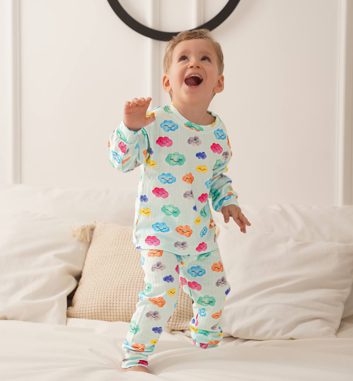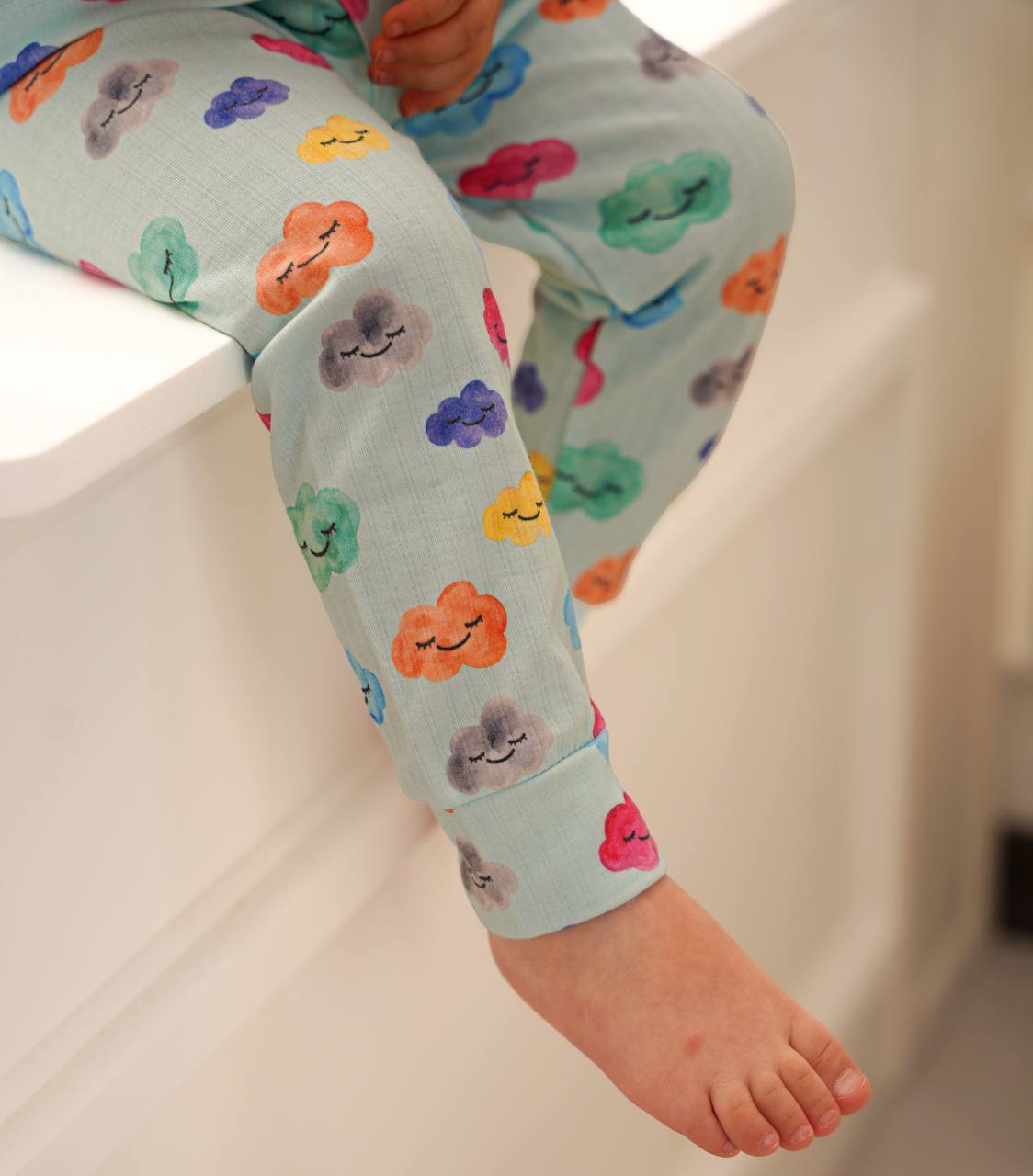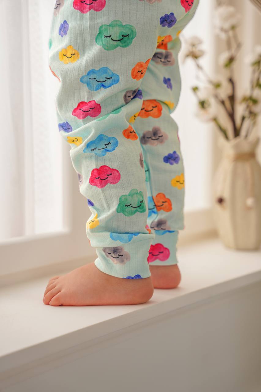 آستین کوتاه و شلوار راحتی جنس پنبه طرح ابرهای رنگی