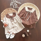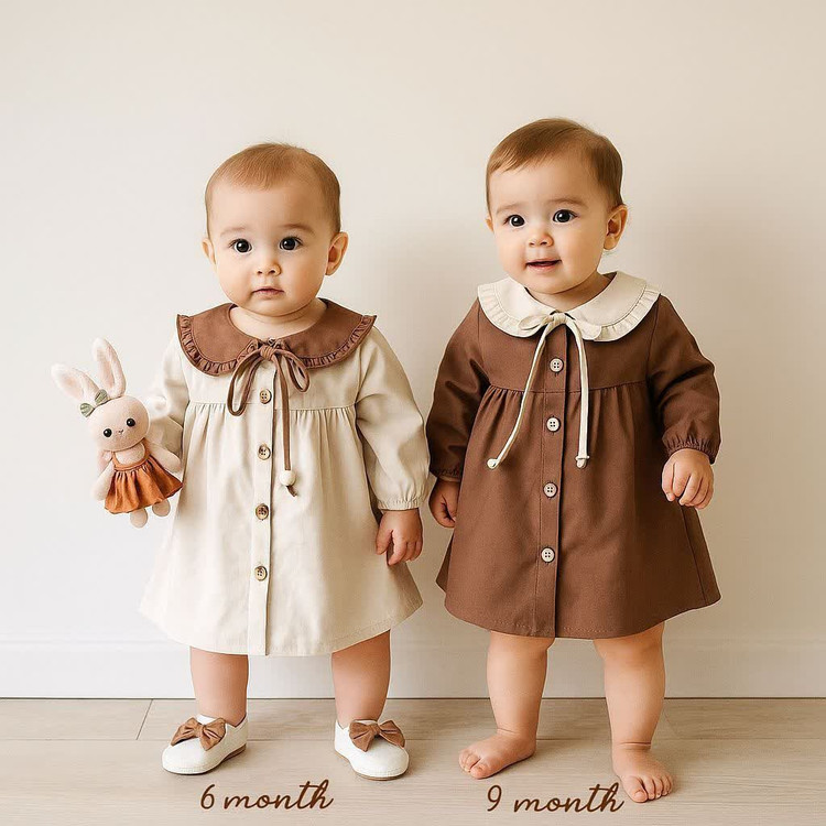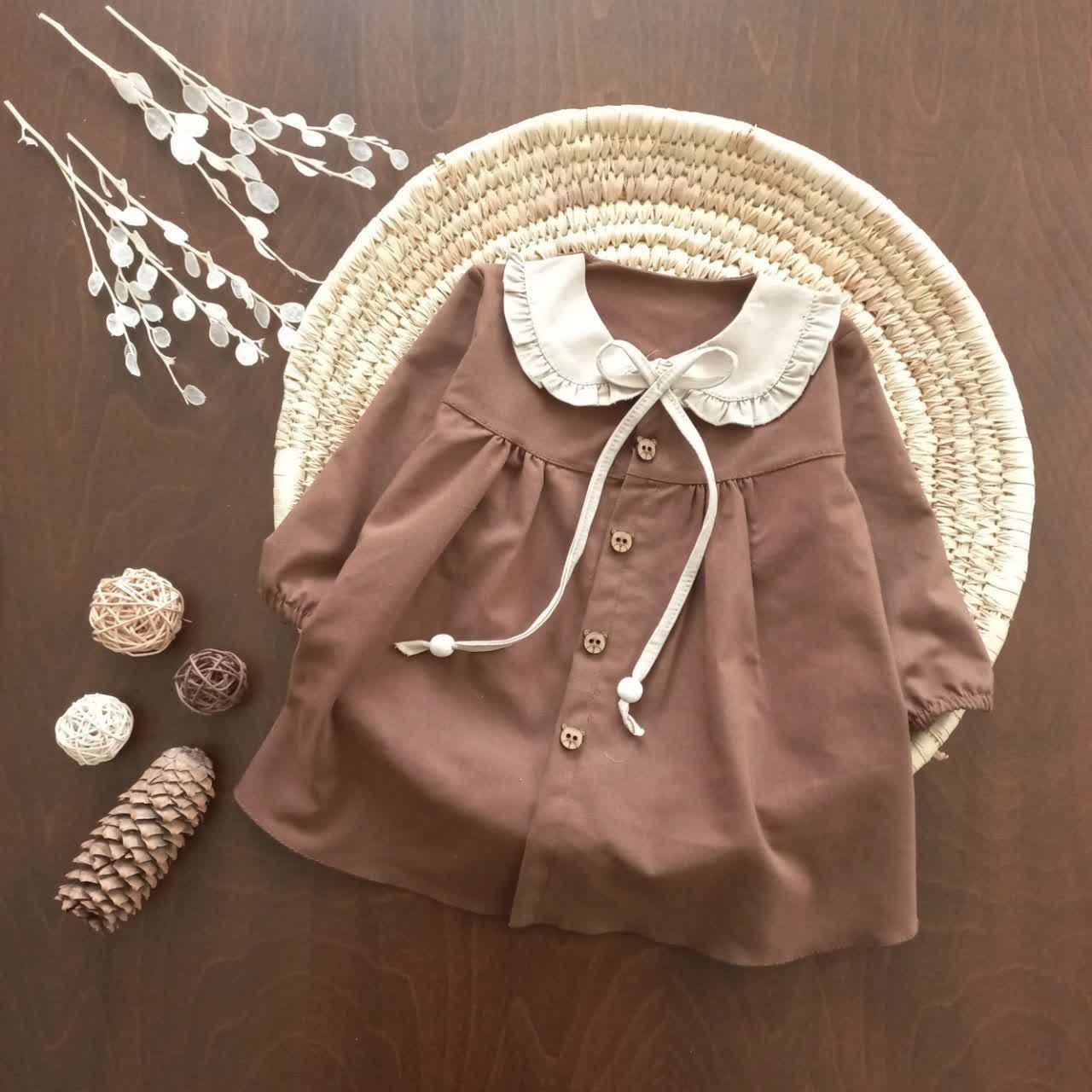 پیراهن دخترانه کتان کش پنبه | قهوه ای و کرمی