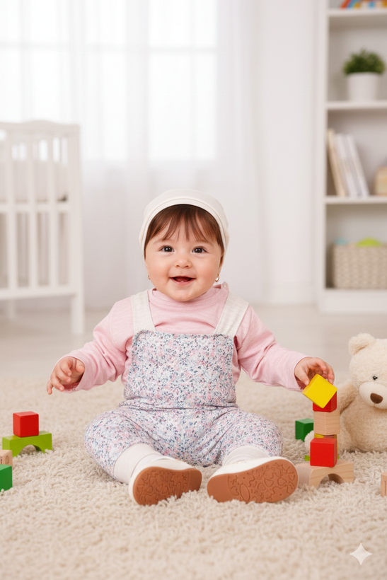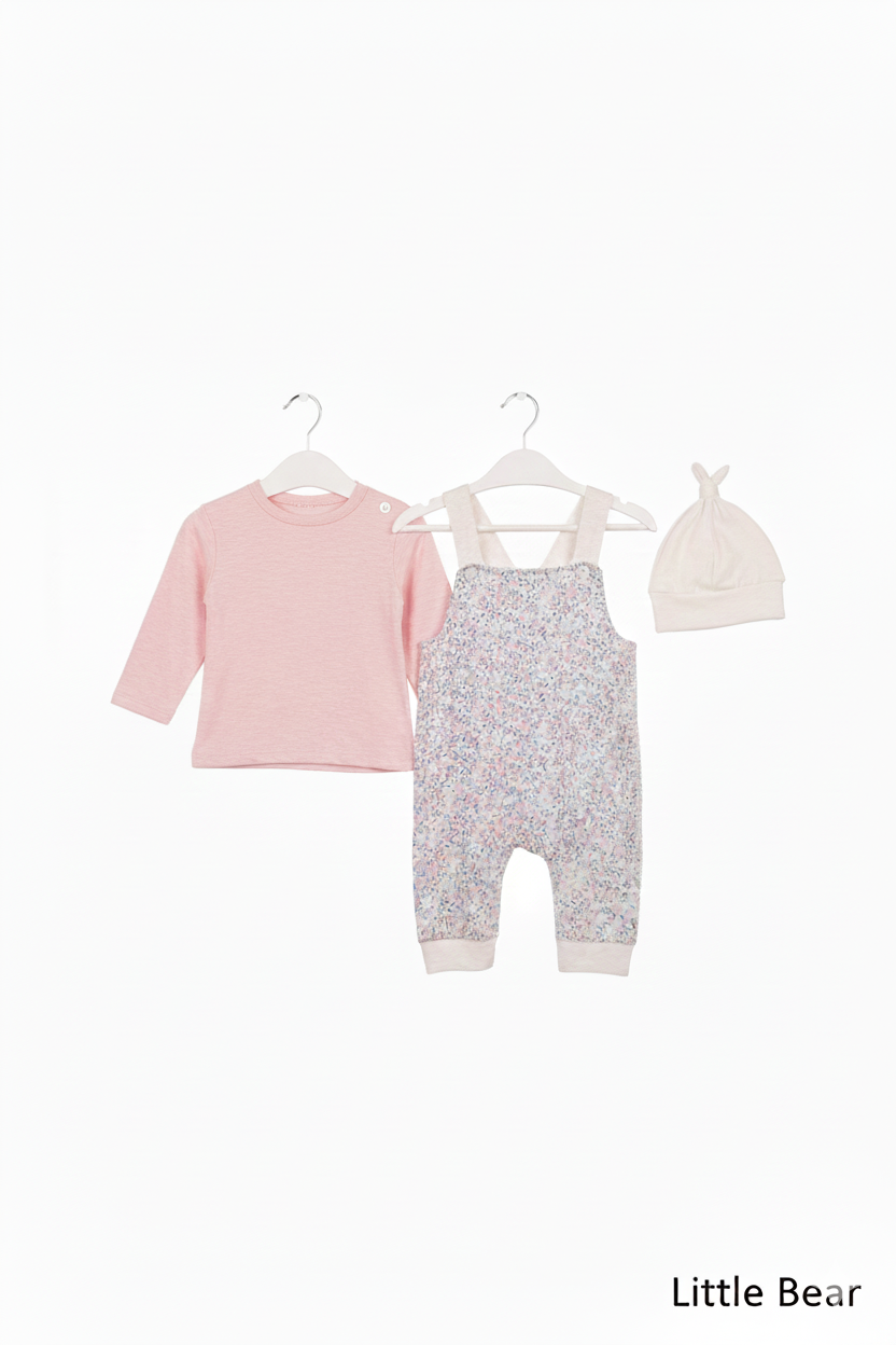 سه تکه پیشبندی پنبه دخترانه طرح گلدار