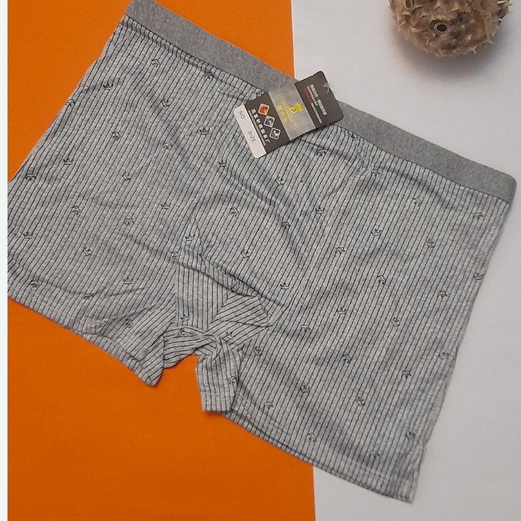شورت نخ پنبه ملانژ طرح دار مردانه اندازه کمر ۴۰ و فاق کار ۳۱ نرم و لطیف راحت با دوام قسمت جلوی شورت و فاق شورت دولایه یه تیکه نخ پنبه ای و در سه رنگ طوسی ، طوسی پررنگ ، طوسی با راه راه بنفش