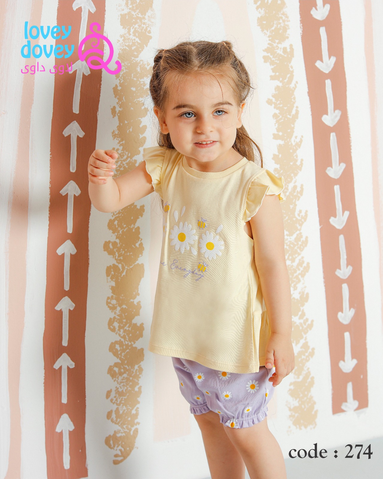 خرید تاپ و شلوارک پنبه طرح بابونه برای نوزادان تا دو سال