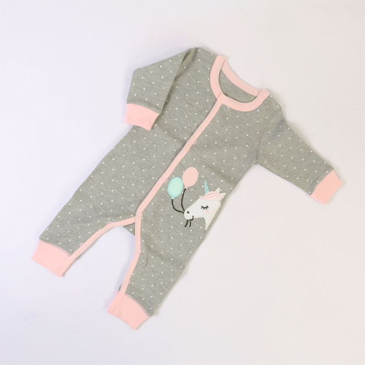 سرهمی پنبه نوزادی چاپدار طرح گلدوزی تک شاخ یونیکورن تمام دکمه مناسب نوزاد تا 24 ماهگی